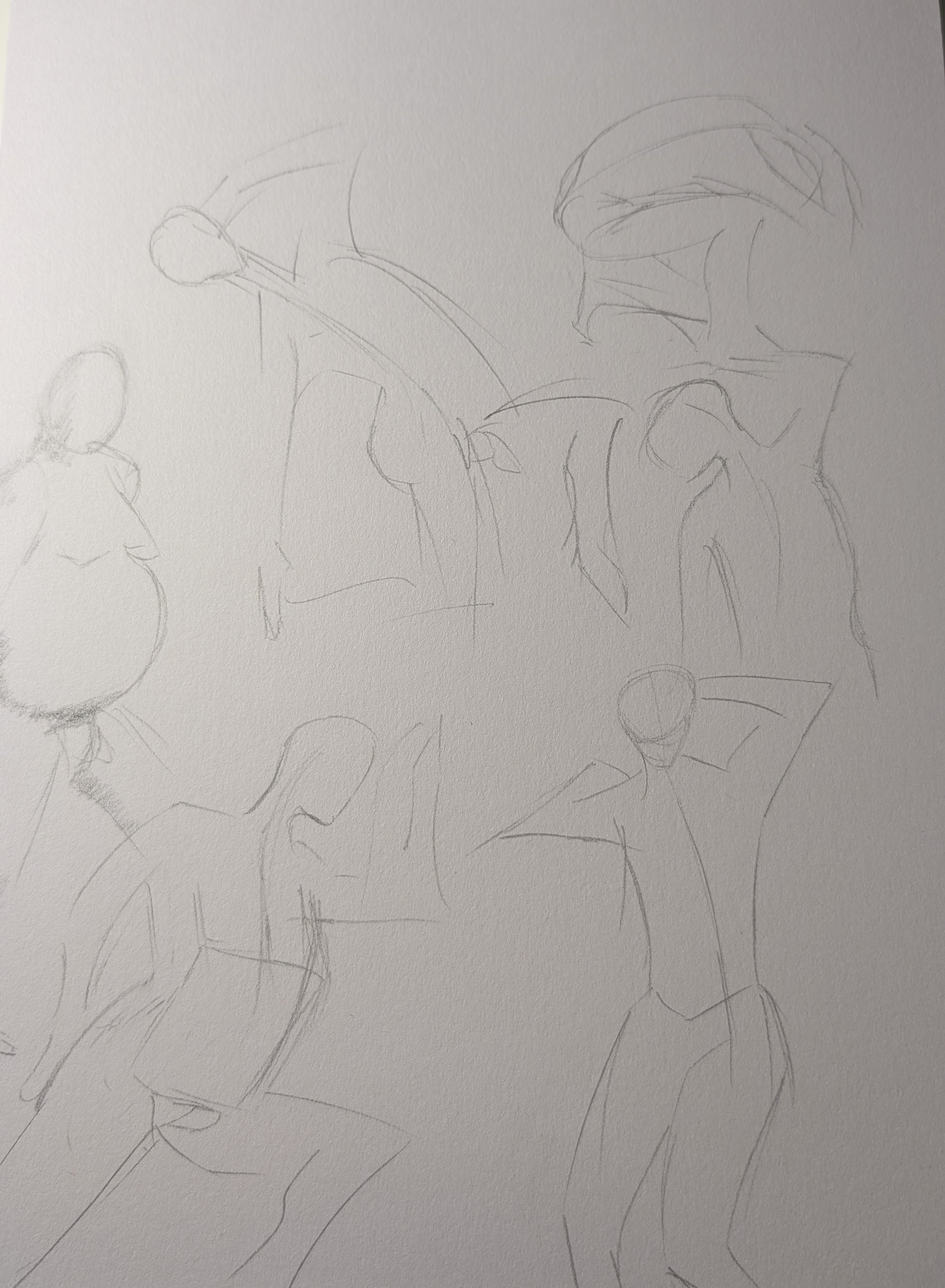 These are images taken from my sketchbook, there is a mix of pencil, pen, charcoal, and watercolor. Many of these are from observations of life.